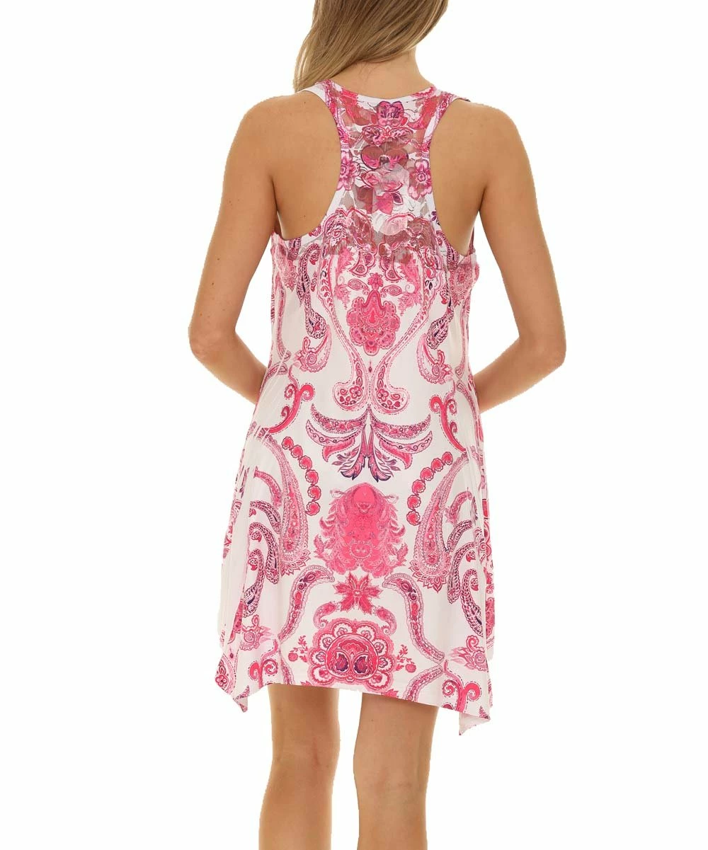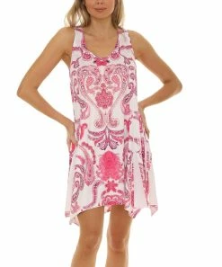 Infuse your sunny-day wardrobe with a touch of timeless elegance with this sleeveless dress that boasts soft, stretch-infused fabric adorned with an intricate Fleur De Lis pattern.