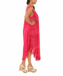 A sleeveless midi dress featuring vibrant tie-dye and delicate paisley accents.