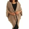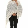 Slip-on this poncho that features a crocheted zigzag pattern and a faux fur trim to keep you stylish and warm.