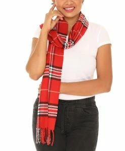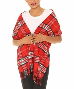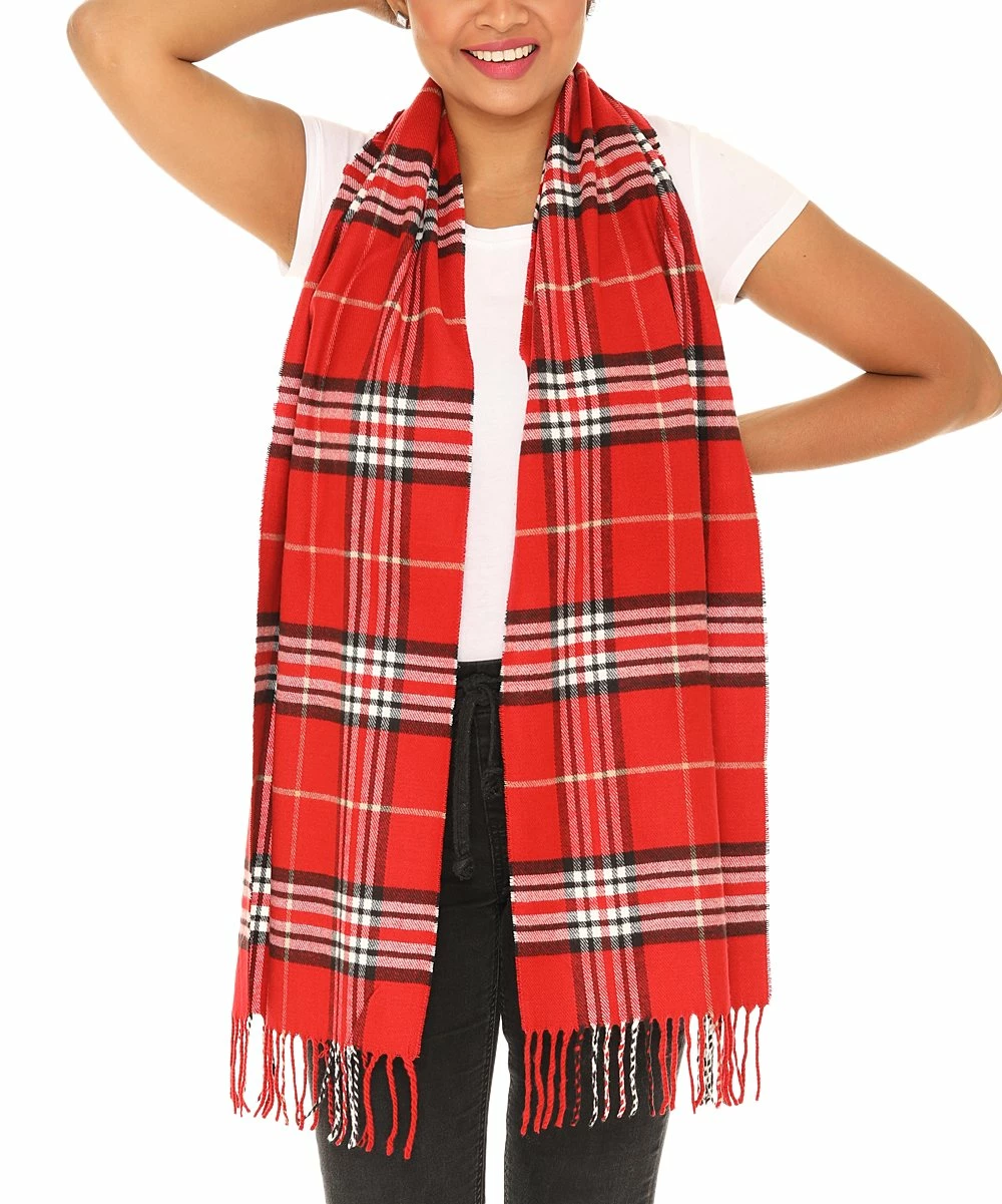 Wrap up your look with the soft cashmere-blend comfort of this scarf styled in a bold plaid pattern for classic cool-weather vibes.