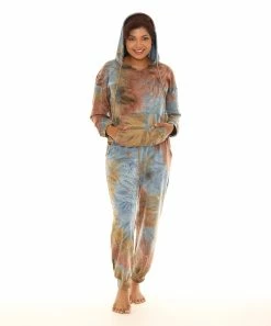 - Includes teal and rust tie-dye hoodie and matching joggers (two pieces total)