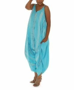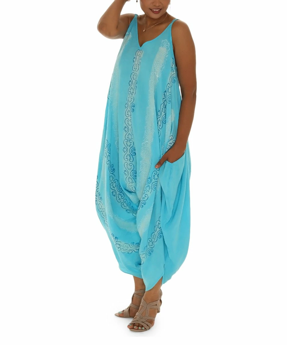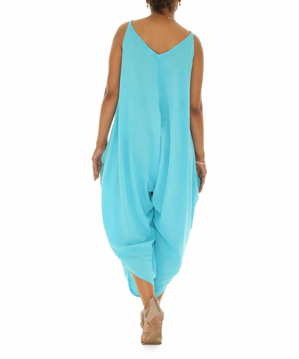 Breeze through the day in with this vibrant harem jumpsuit featuring a flowy fit and a flattering v-neckline.