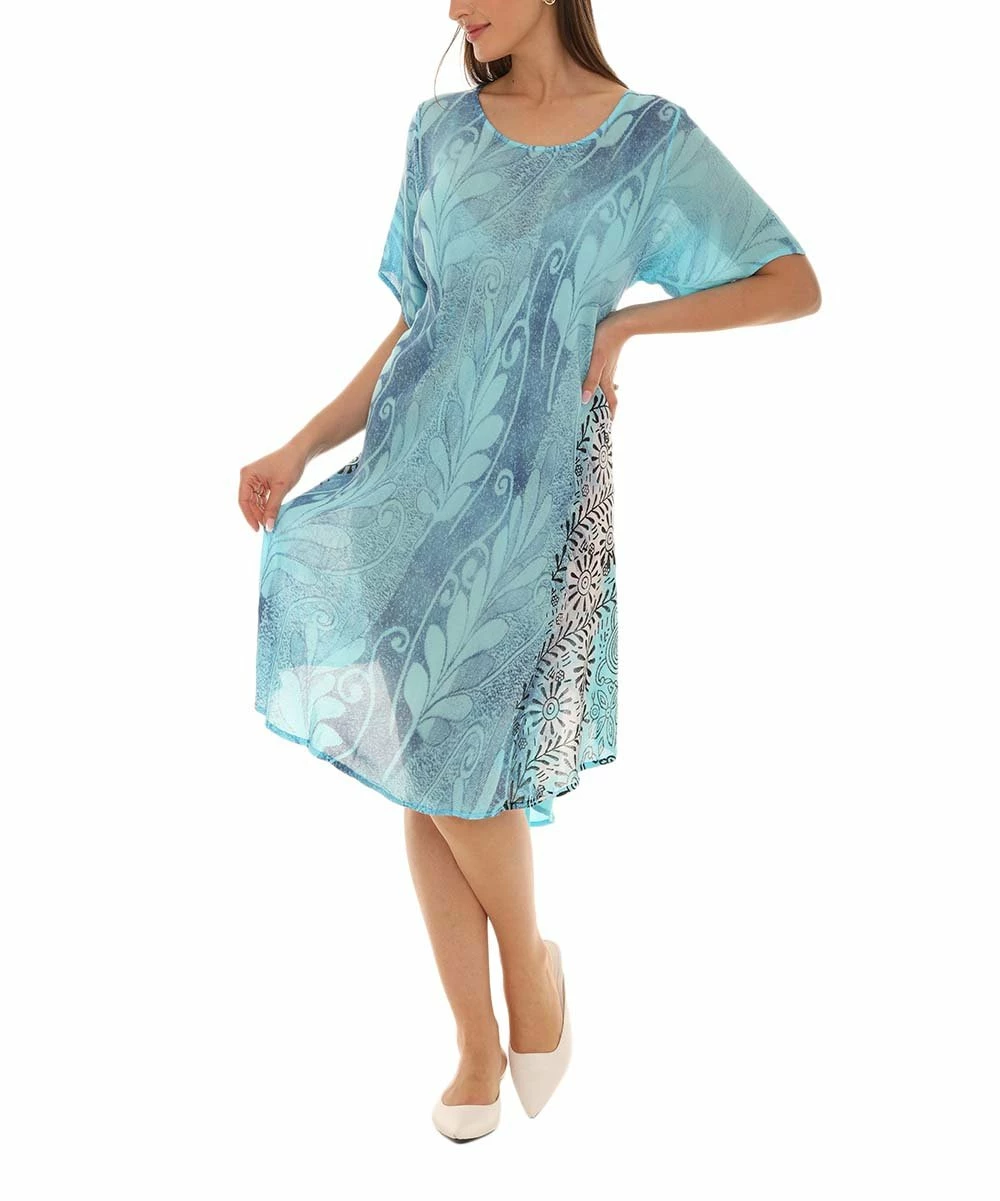 Dive into warmer-weather wear with this roomy shift dress that features a flowy handkerchief hem and a beachy floral print for added flair.
