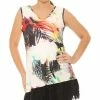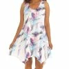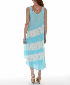 Go with the flow in this boho curved-hem dress featuring a sleeveless cut, tie-dye stripes and embroidered flowers around the neckline.