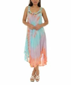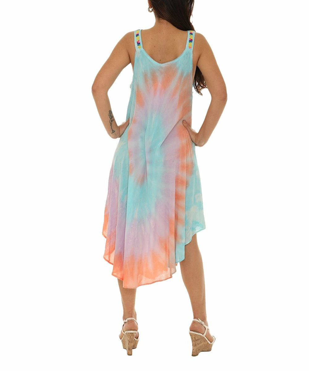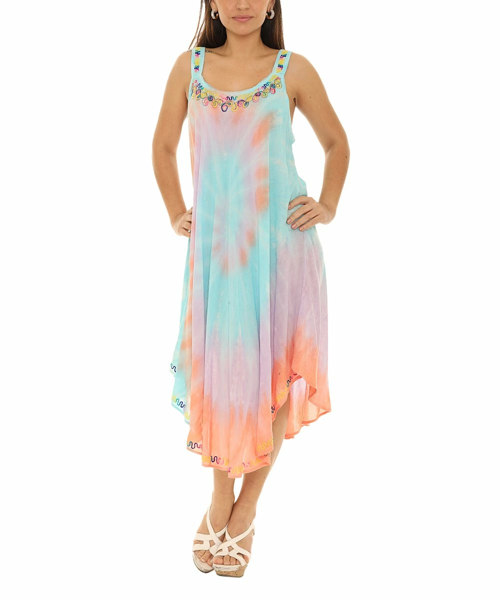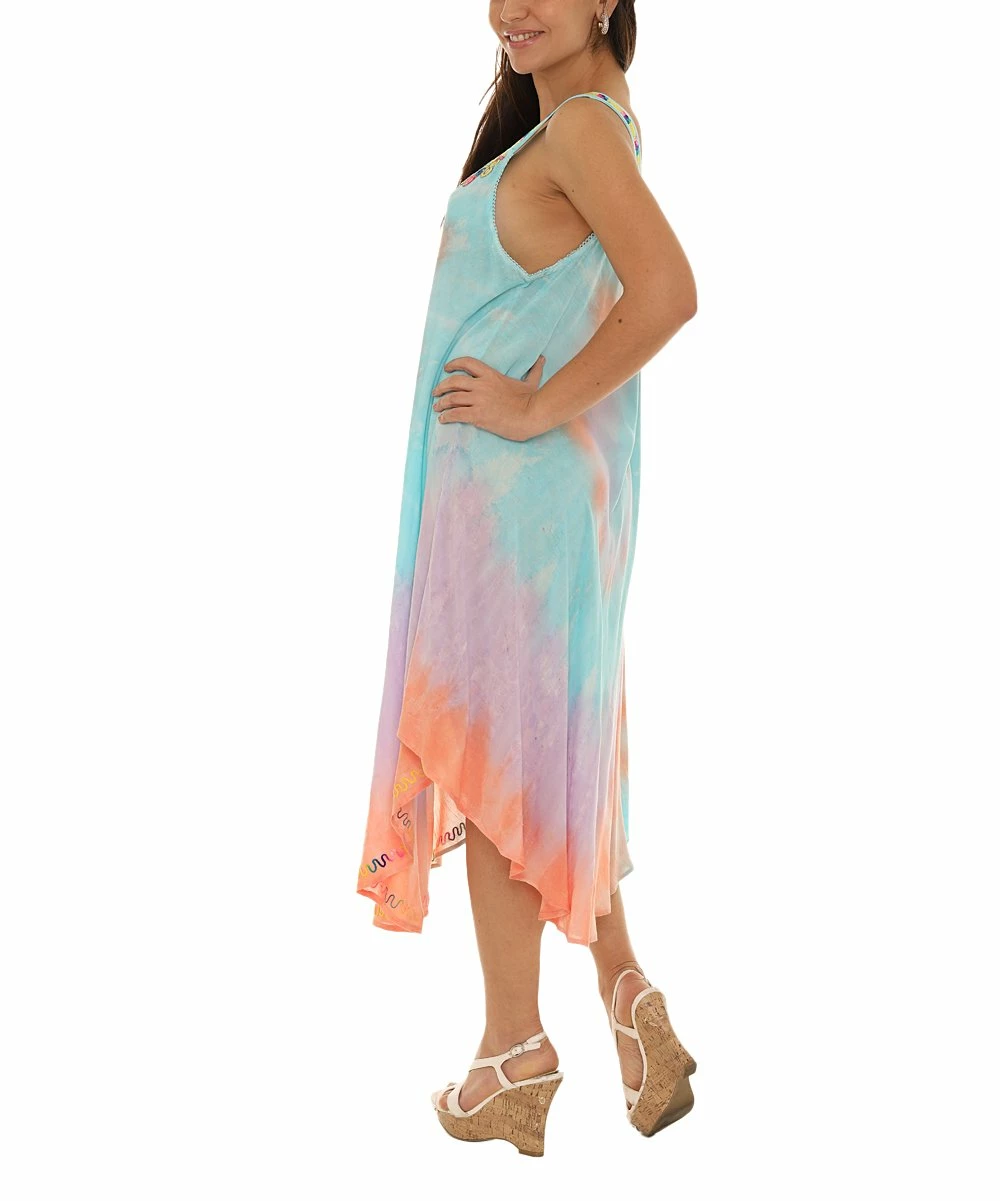 A dynamic option for travel or weekend gatherings, this sleeveless dress flaunts a trend-right curved hem and a statement-making print.