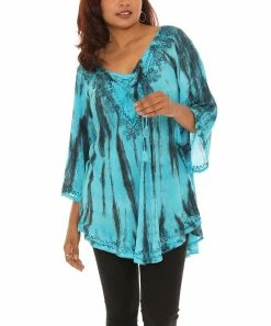 Hot Sale πŸ˜€ Shoreline Turquoise Tie-Dye Embroidered Bell-Sleeve Scoop Neck Tunic – πŸ‘© Women & Plus πŸ”₯