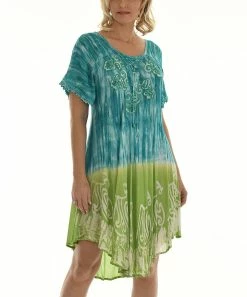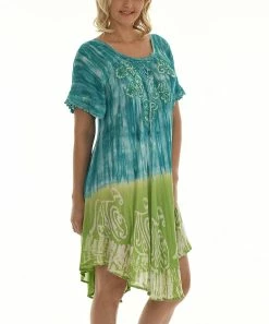 Indulge in the breezy comfort of this lightweight dress crafted with a flowy A-line cut. A bold tie-dye pattern is sure to make you the center of attention.