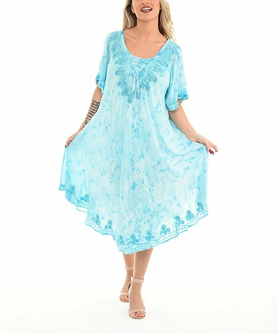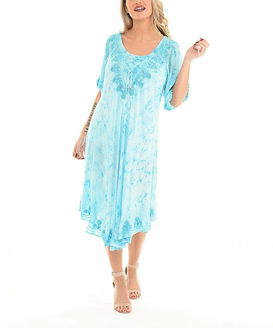 Welcome boho-chic appeal into your closet collection courtesy of this shift dress boasting a vivid hue and laid-back shape.