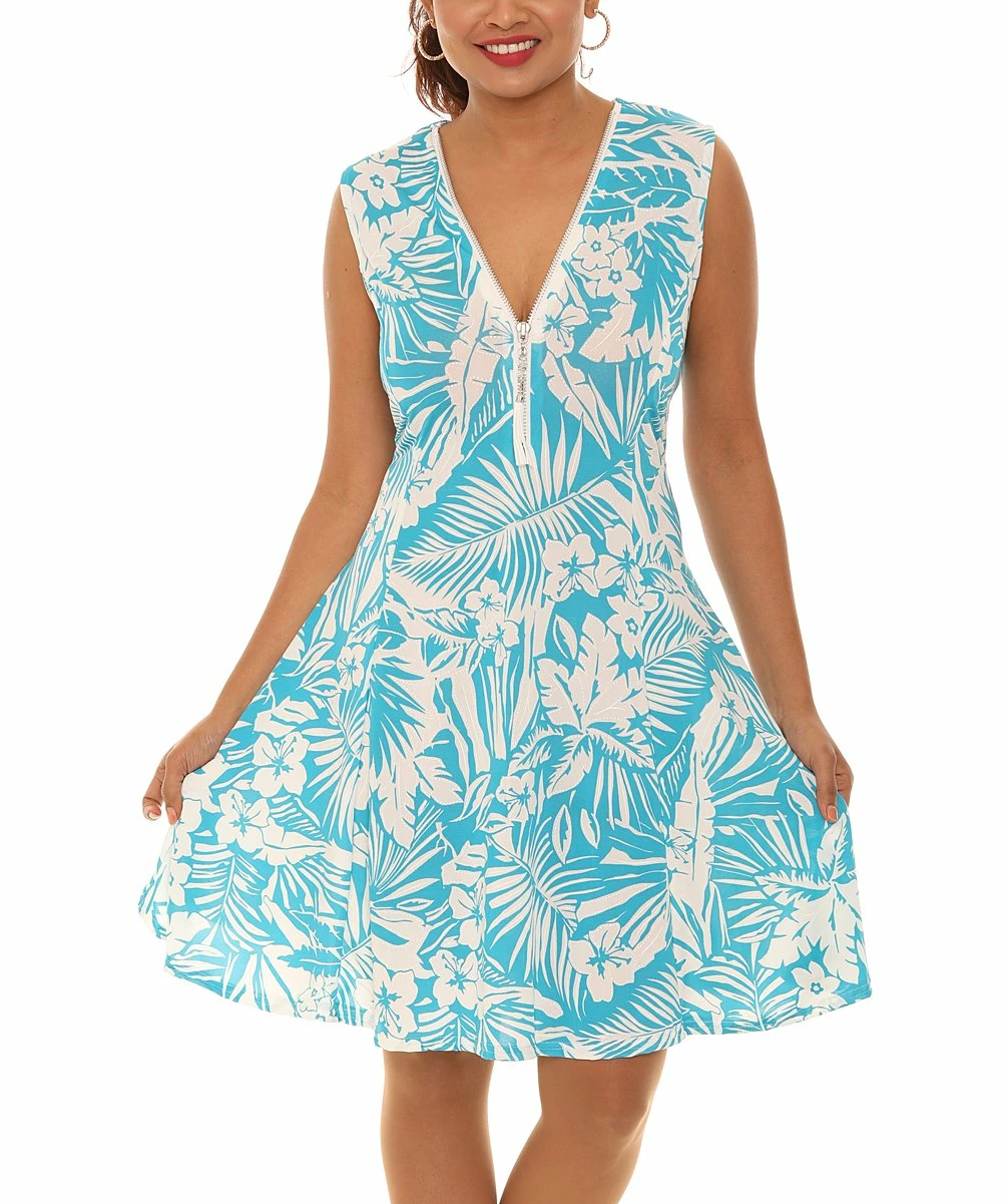 Refresh your closet with this sleeveless A-line dress that features a dainty front-zip accent for added flair.