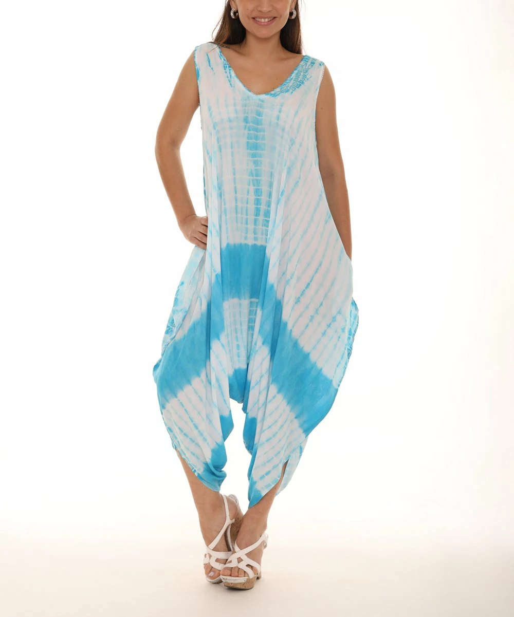 This on-trend jumpsuit features harem-style pants and a front and back v-neckline.