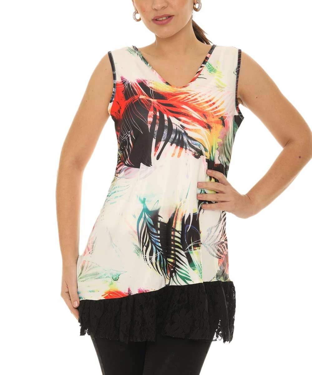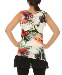 This bold showstopper features a bright print and a ruffly lace hem. Sleeveless silhouette keeps you cool and layers seamlessly.