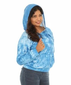 This stretch-friendly tie-dye hoodie has a convenient kangaroo pocket to keep your hands warm.