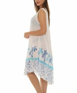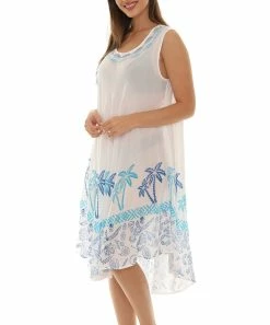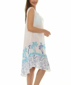 Sleeveless dress featuring a coastal-inspired print and scoop neckline.