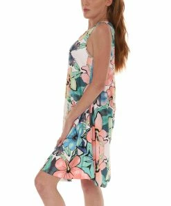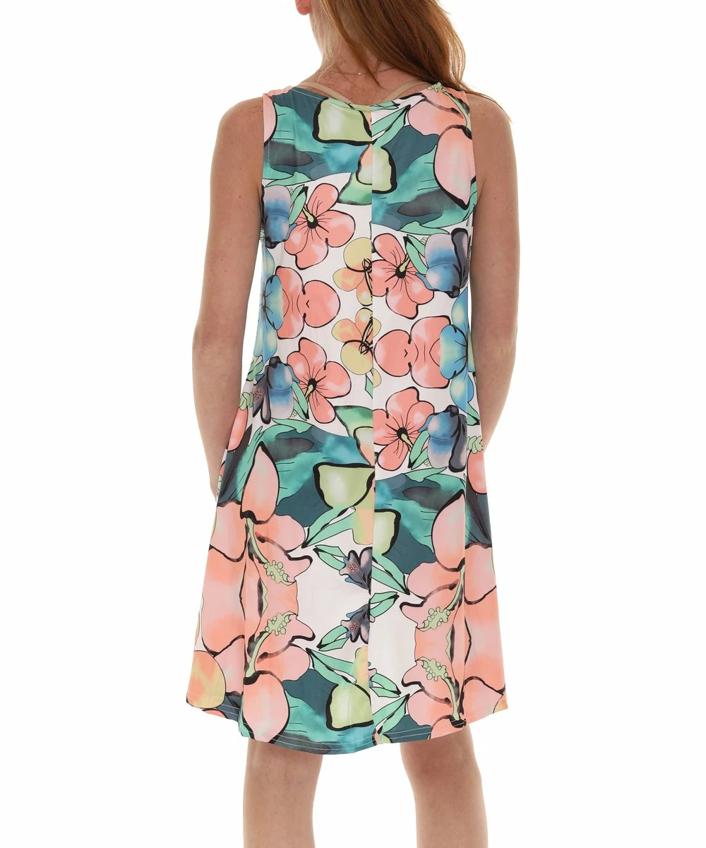 You’ll bloom in this relaxed shift dress featuring a kaleidoscopic floral print and sleeveless cut.