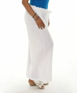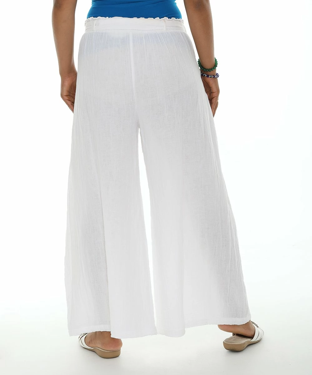 Flowy wide-leg pants featuring a tie-front and convenient pockets.