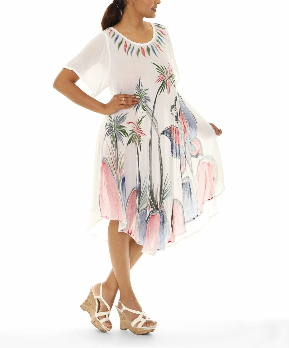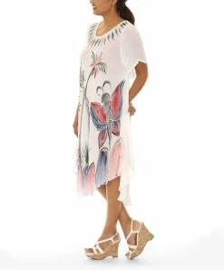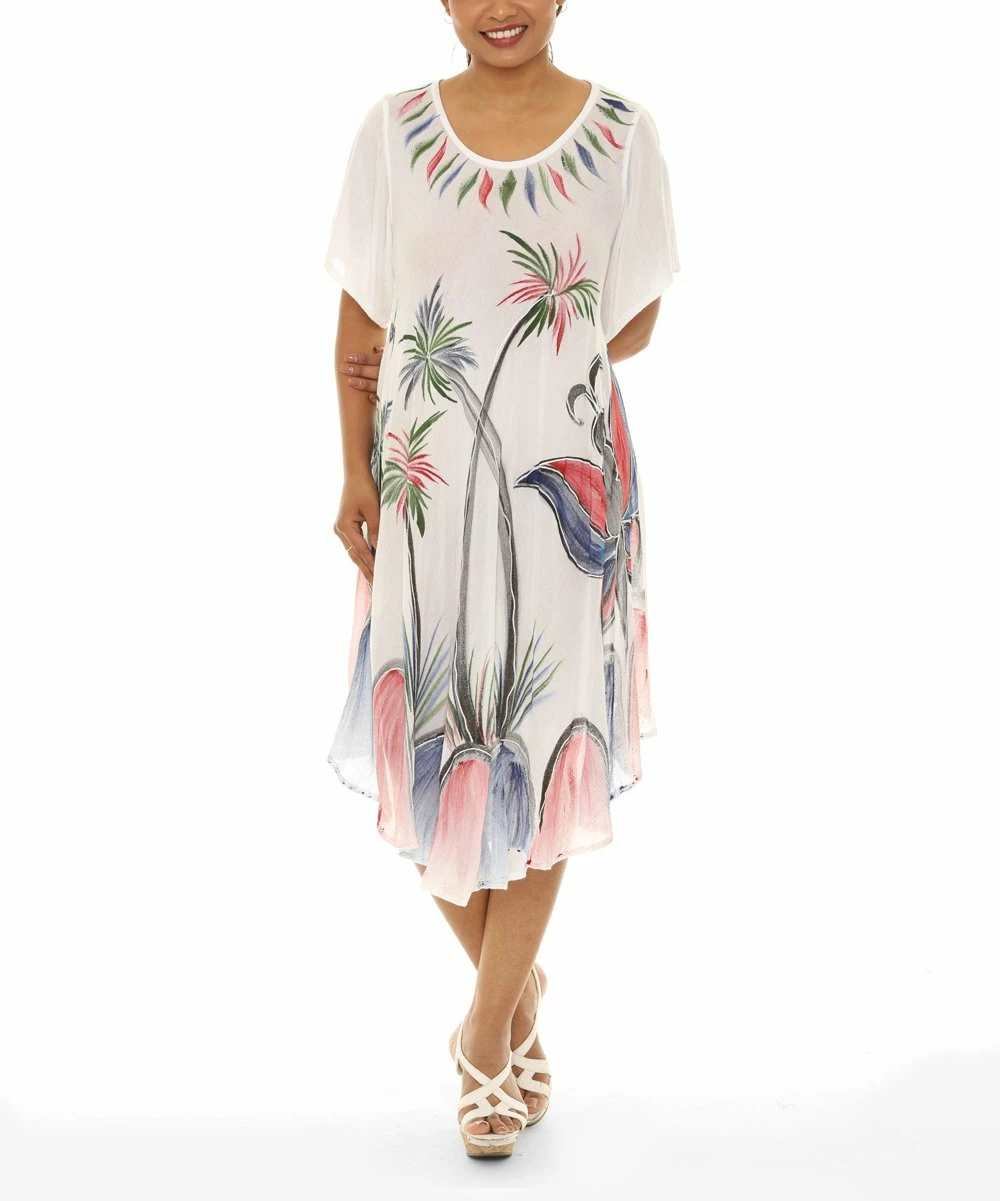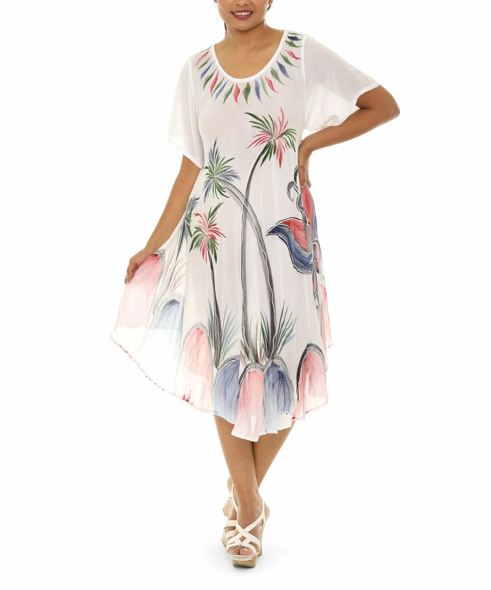 Add an easy breezy element to your attire with this flowy short-sleeve shift dress featuring a colorful print and a scoop neckline for a flirty finish.