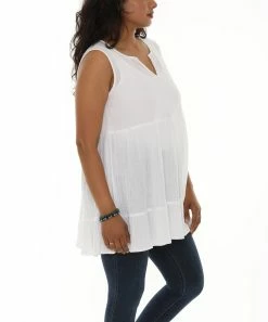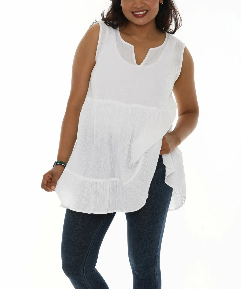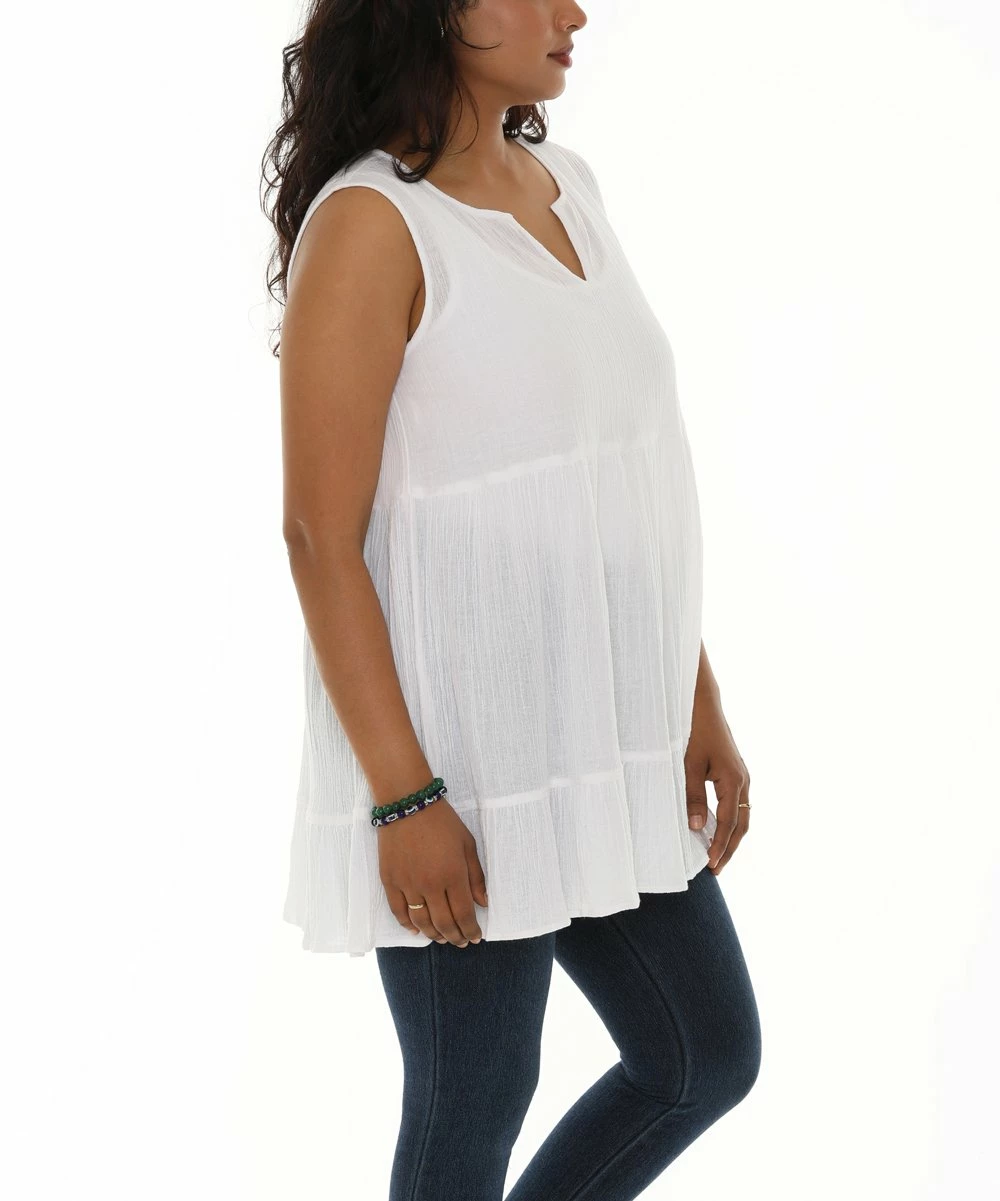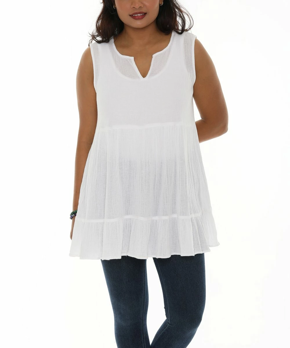 Discount 🀩 Shoreline White Sleeveless Notch Neck Swing Tunic – πŸ‘© Women & Plus βœ”οΈ