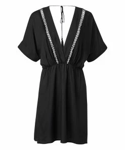 Best deal πŸ’― Venus | Black Crochet-Trim Tassel-Tie Deep V-Neck Cover-Up – πŸ‘© Women & Plus ⭐