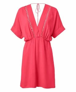 Slip something comfy over your swimwear. This short-sleeved cover-up features sheer crochet details down the front, a flattering elastic waist and high side slits to catch those shoreline breezes.