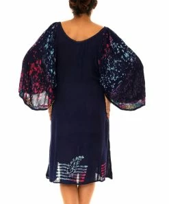 Cheapest π€© Shoreline Blue Multicolor Embroidered-Batik Trim Bell-Sleeve π Dress – Plus π